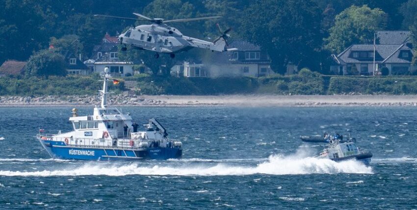 In einer gemeinsamen Übung in der Kieler Bucht / Strander Bucht zwischen Landespolizei Schleswig-Holstein (mit mehreren Booten) und einem NTH NH 90 Sea Lion vom MFG 5 wurde die Zusammenarbeit gestärkt. Das gemeinsame WINCHEX war denn auch wenig zimperlich. Das alles bei angeblich 35 Knoten mit dem neuen Polizeiboot FGS Sprotte, welches eine Speed von 49 Knoten schaffen soll.