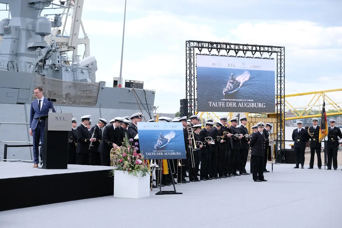 The corvette is optimised for operations in coastal areas and will play an important role in maritime reconnaissance and maritime target engagement in the future, particularly in the North and Baltic Seas. The christening of the "Augsburg" marks a further visible step in the Navy's ongoing procurement programme.