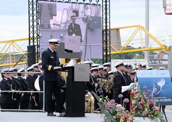The "Augsburg" is the fourth of a total of five units in the second lot, which is being built by the K130 consortium - consisting of NVL Group, thyssenkrupp Marine Systems and German Naval Yards Kiel. Following the christening, the ship will undergo final outfitting and commissioning in Hamburg and will undergo all the necessary functional tests and approvals in close coordination with the public client and the German Navy.