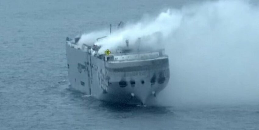 A fire broke out on one of the vehicle decks of the Panama-flagged car carrier Fremantle Highway, which is almost 60,000 GT in size and 200 metres long and was travelling from Bremerhaven 27 kilometres north of the island of Ameland. The ship, owned by Japanese shipping company K-Line, was carrying 3783 new cars, including 498 electric vehicles, as well as other large vehicles. The fuel bunkers contained 1600 tonnes of heavy fuel oil and 200 tonnes of marine diesel. It was initially assumed that one of the electric vehicles was the cause of the fire. Whether this was actually the case remains to be determined by a detailed investigation.