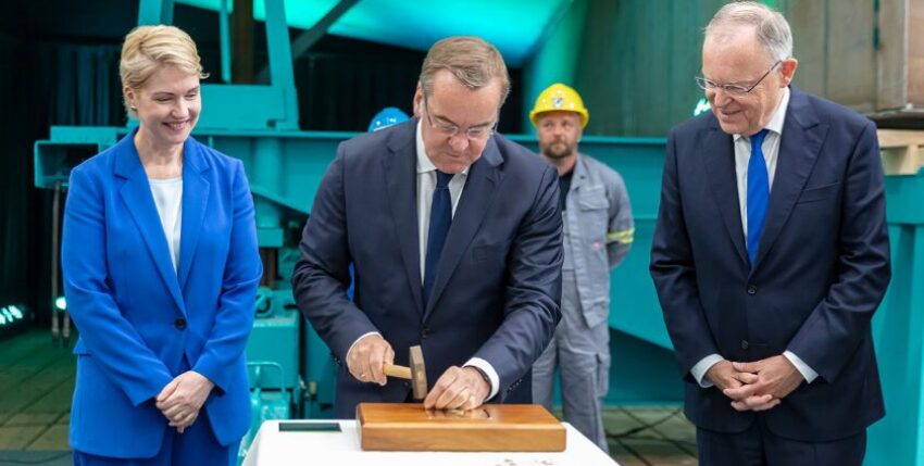 Minister Pistorius bei der Kiellegung der ersten Fregatte der Klasse 126 „Niedersachsen“ anwesend