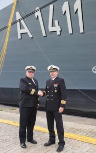 Heute übergab der Kommandeur der Einsatzflottille 2, Flottillenadmiral Axel Schulz, das Kommando des Trossgeschwaders von Fregattenkapitän Thorsten Geldmacher an den neuen Kommandeur des Geschwaders, Kapitän zur See Andreas Schmekel. Die Übergabezeremonie fand auf dem Einsatzgruppenversorger „Berlin“ im Marinestützpunkt Heppenser Groden in Wilhelmshaven statt. Seit fünf Jahren hatte der scheidende Kommandeur, Fregattenkapitän Geldmacher, das Kommando über das Trossgeschwader inne. Über diesen Zeitraum sagt Geldmacher: „Die vergangenen Jahre als Kommandeur Trossgeschwader waren geprägt durch die COVID 19 Pandemie, die Zeitenwende und die Bestrebungen zur Erneuerung des zivil besetzten Schiffsbestands des Trossgeschwaders. Neben dem begonnenen Neubau der beiden Marinebetriebsstoffversorger der Klasse 707 freut mich besonders die kurzfristige Beschaffung der Hochseeschlepper ‚Rügen‘ und ‚Borkum‘, mit denen das Trossgeschwader auch künftig die Unterstützung und Entlastung der Flotte in vielen Bereichen einschließlich der Teilnahme an Einsätzen und Übungen in NATO-Verbänden sicherstellen wird.