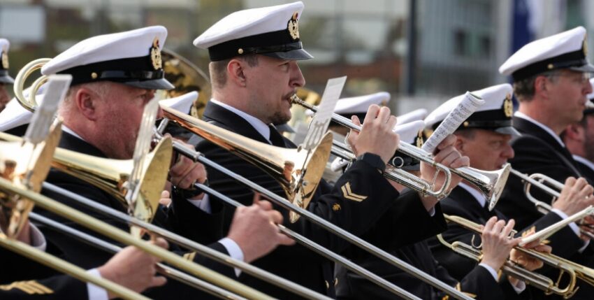 Soldatinnen und Soldaten beizuwohnen. Musikalisch begleitet wird der festliche Akt durch das Marinemusikkorps Wilhelmshaven unter der Leitung von Fregattenkapitän Prock. Nach dem Spielen der Nationalhymne der Bundesrepublik Deutschland endet das Zeremoniell.